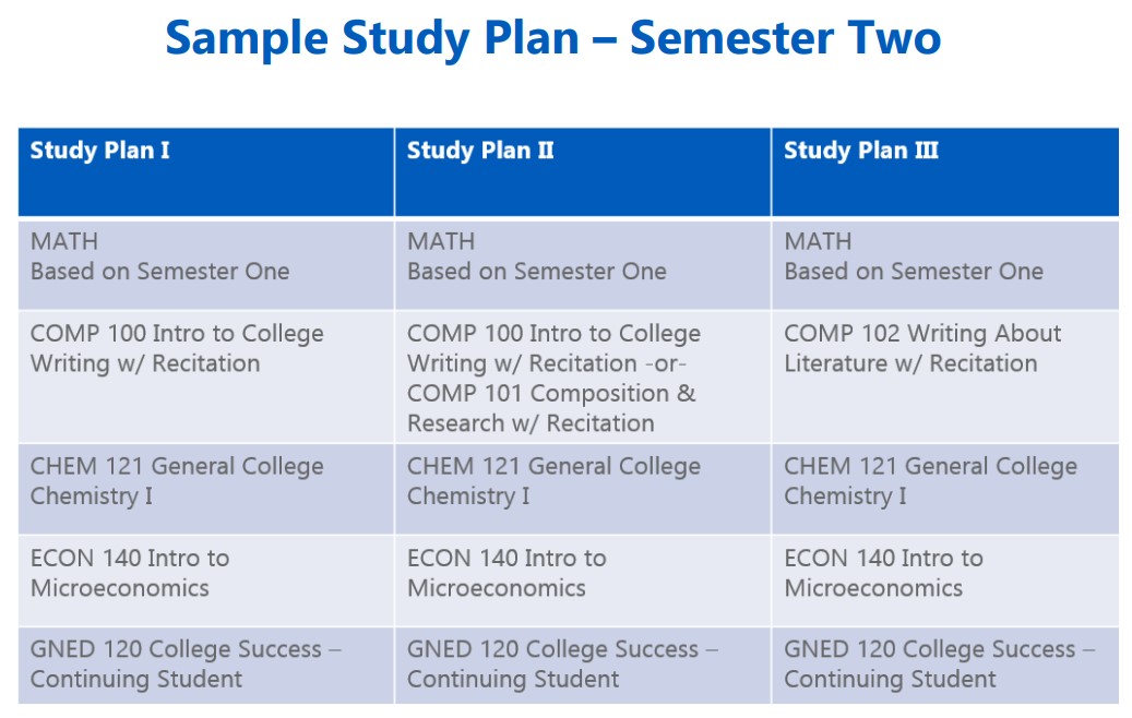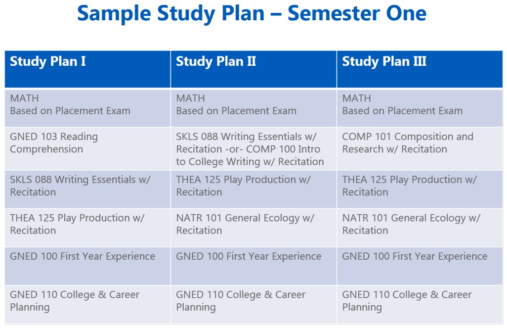 SUNY IPP 스터디 플랜 예시 첫 학기에는 영어, 수학, 교양 과목을 수강합니다.