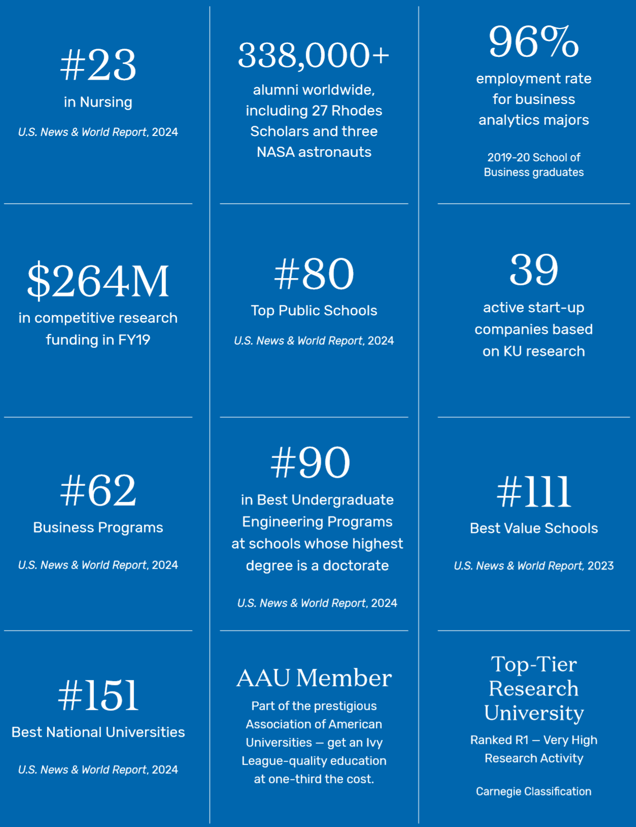 KU 특장점은 앞서 언급한 연구 중심 대학의 면모를 갖춘, AAU 회원 대학으로 캠퍼스내 훌룡한 실험 시설들을 운영하고 있다는 점 입니다 유명 졸업 인사로는 Steven Hawley, NASA 우주인으로 물리/천문학 교수로 KU 재직중 캔자스 대학의 주요전공 순위를 살펴 보겠습니다.