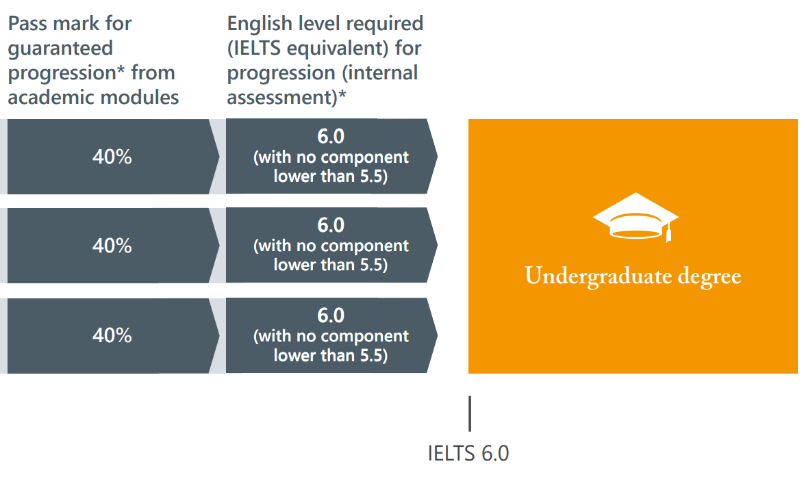 학사 2학년으로의 진학 보장 기준은 모든 계열에 동일한 GPA 평균 40점 이상 및 IELTS 6.0 입니다.